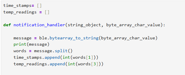 A notification handler which can track when data changes is set up. As it receives raw byte data, it prints it.